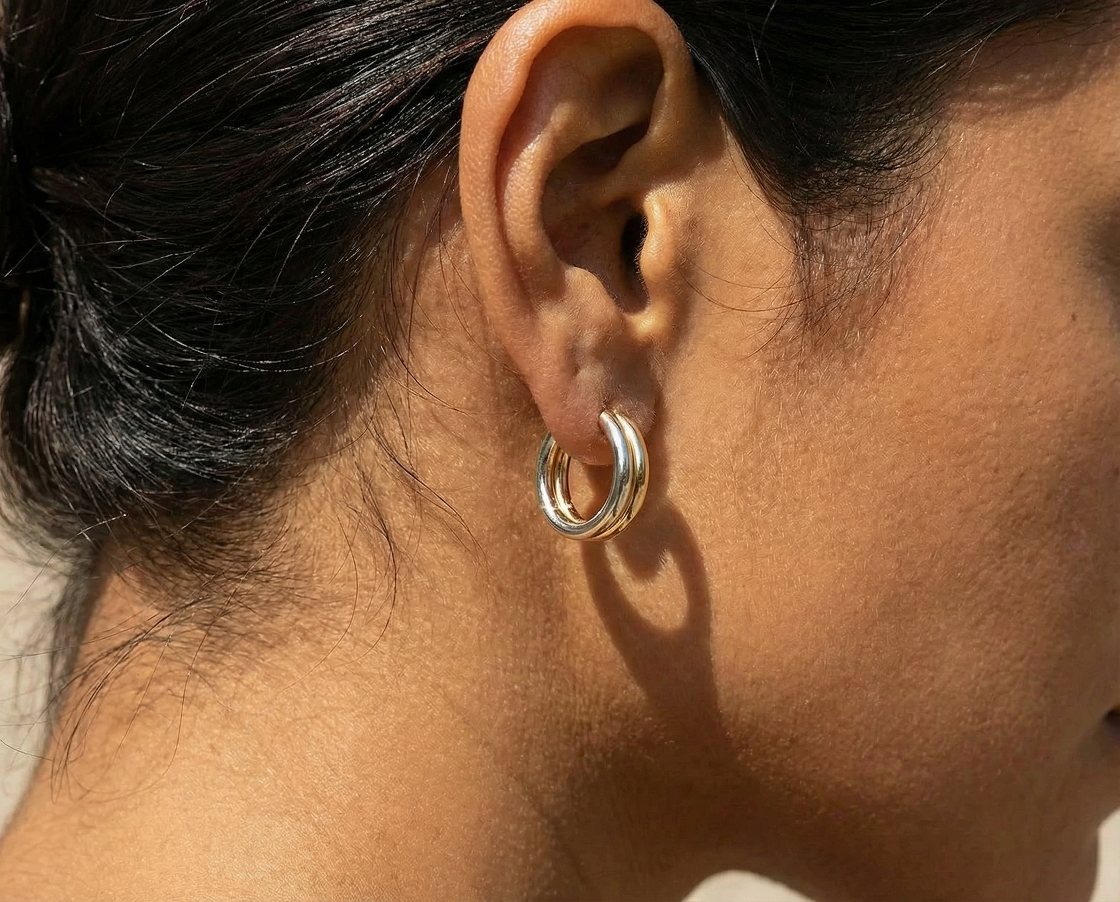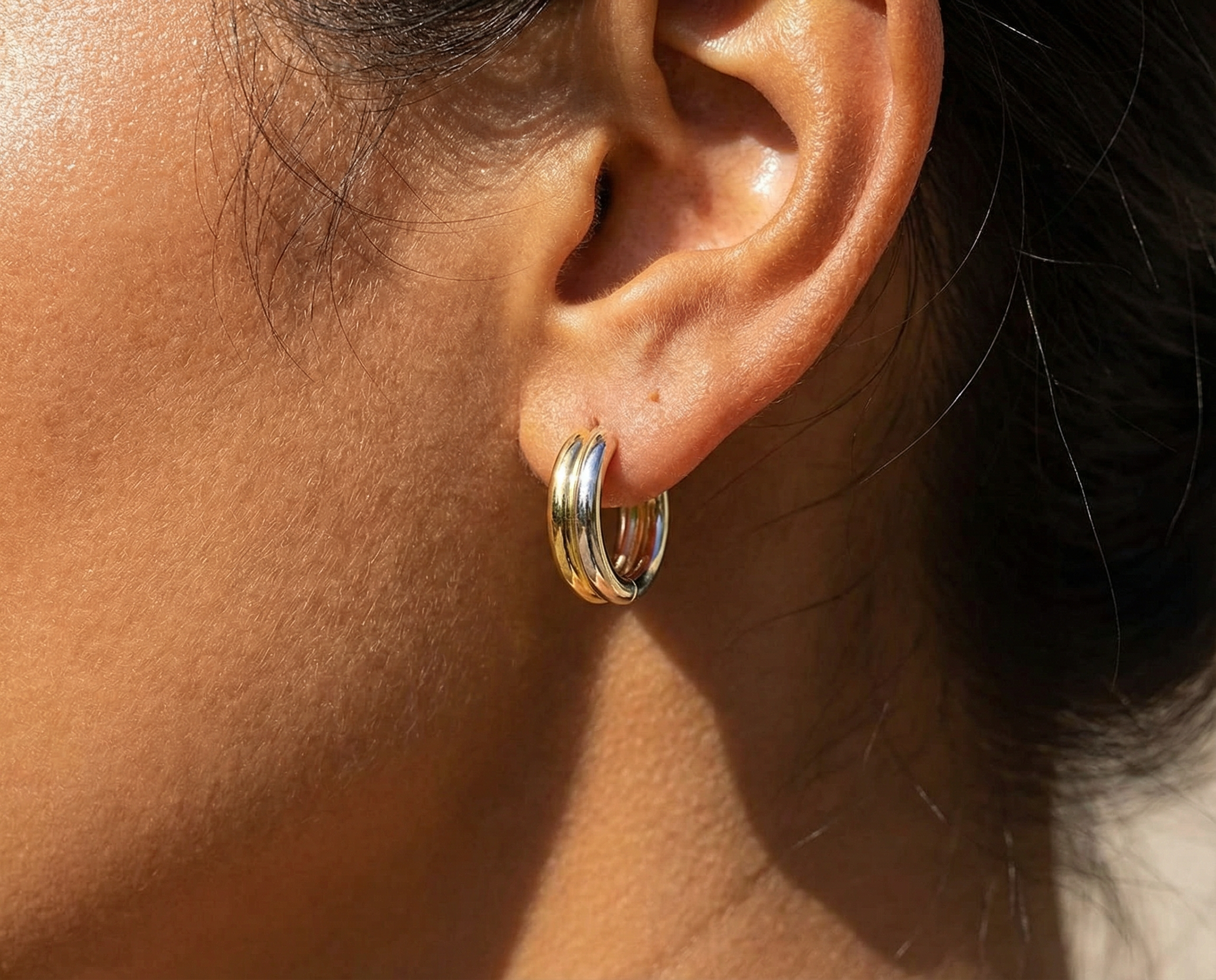 Two‑Tone Huggie Hoop Earrings