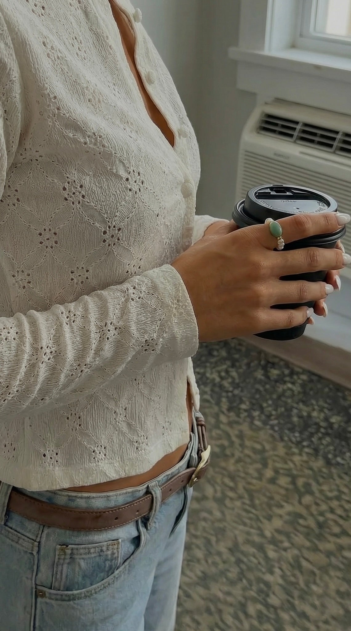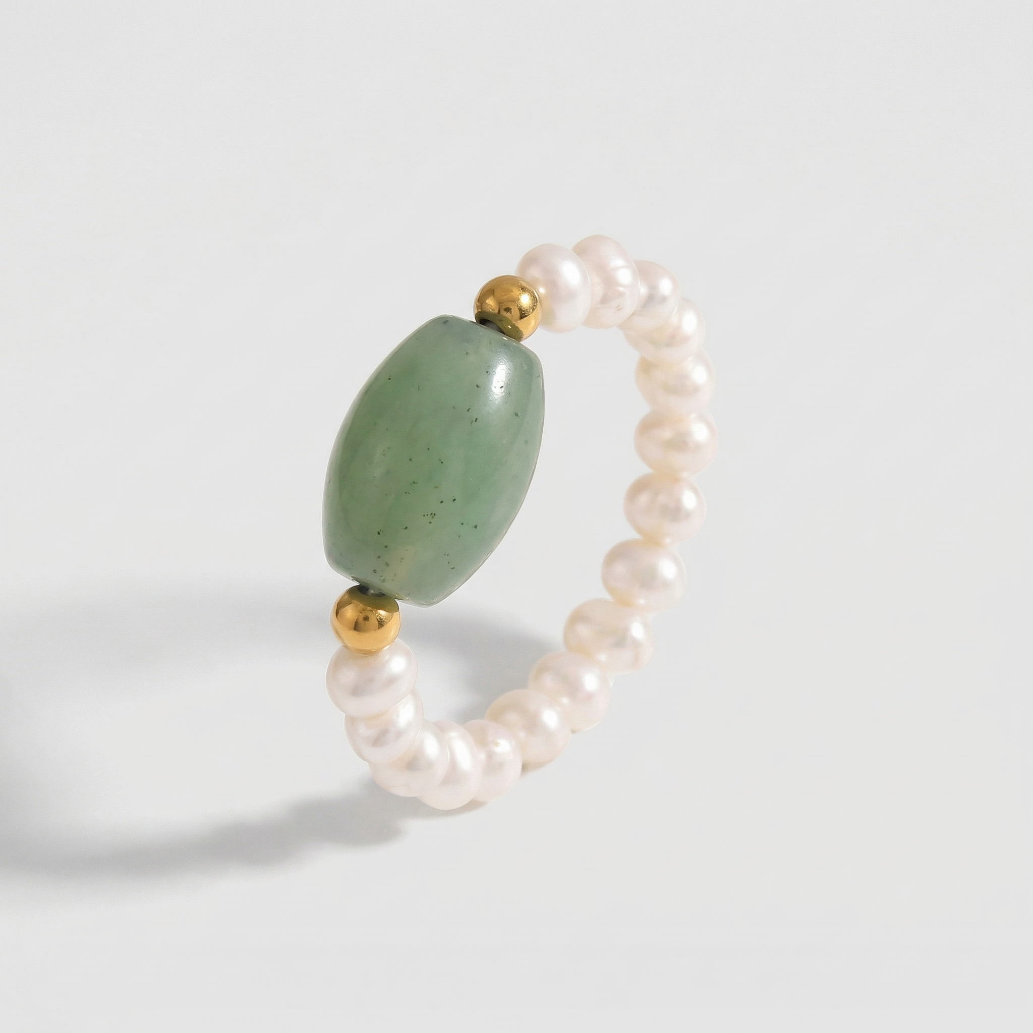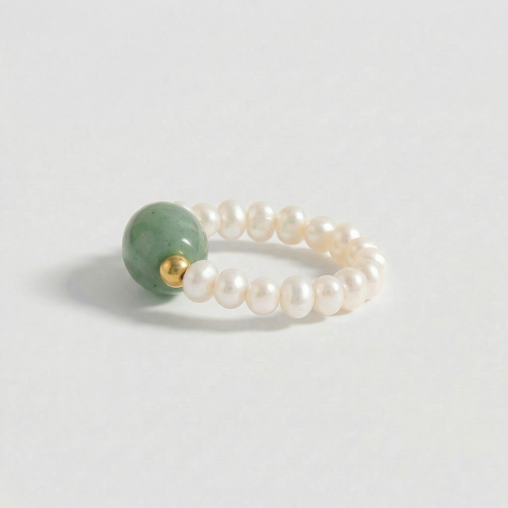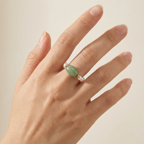 Jade & Pearl Beaded Stretch Ring