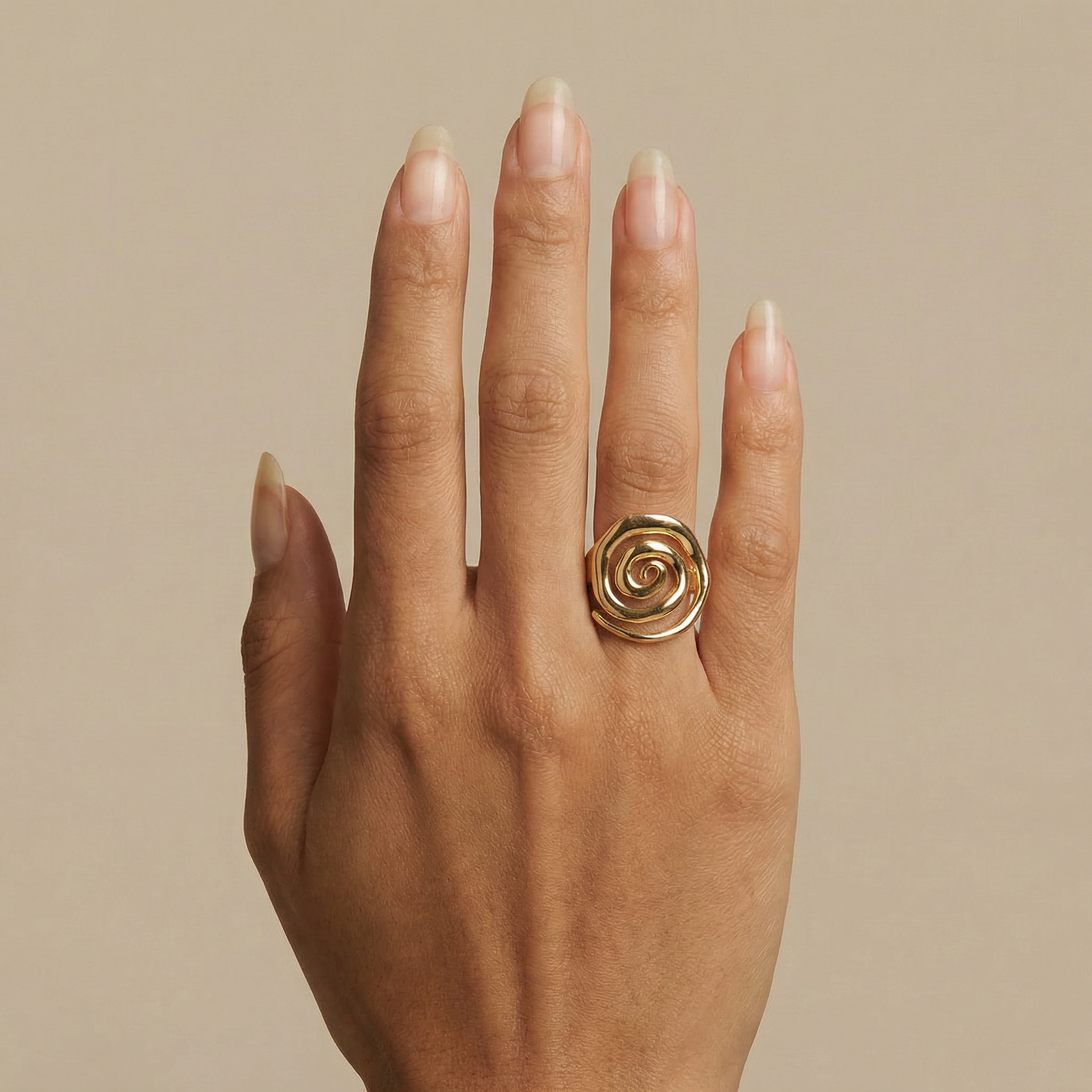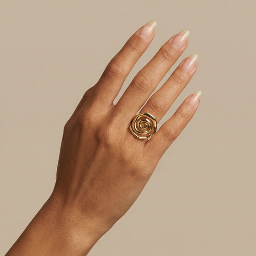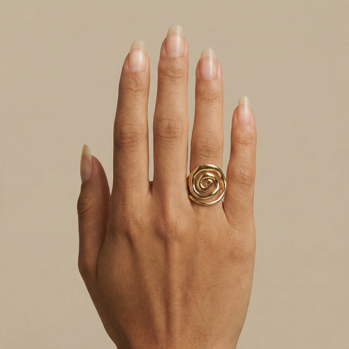 from Kalakaar Jewellery is inspired by the timeless spiral of ammonite fossils, combining natural elegance with contemporary design. Its open band allows for comfortable, adjustable wear while creating a bold, eye-catching silhouette.