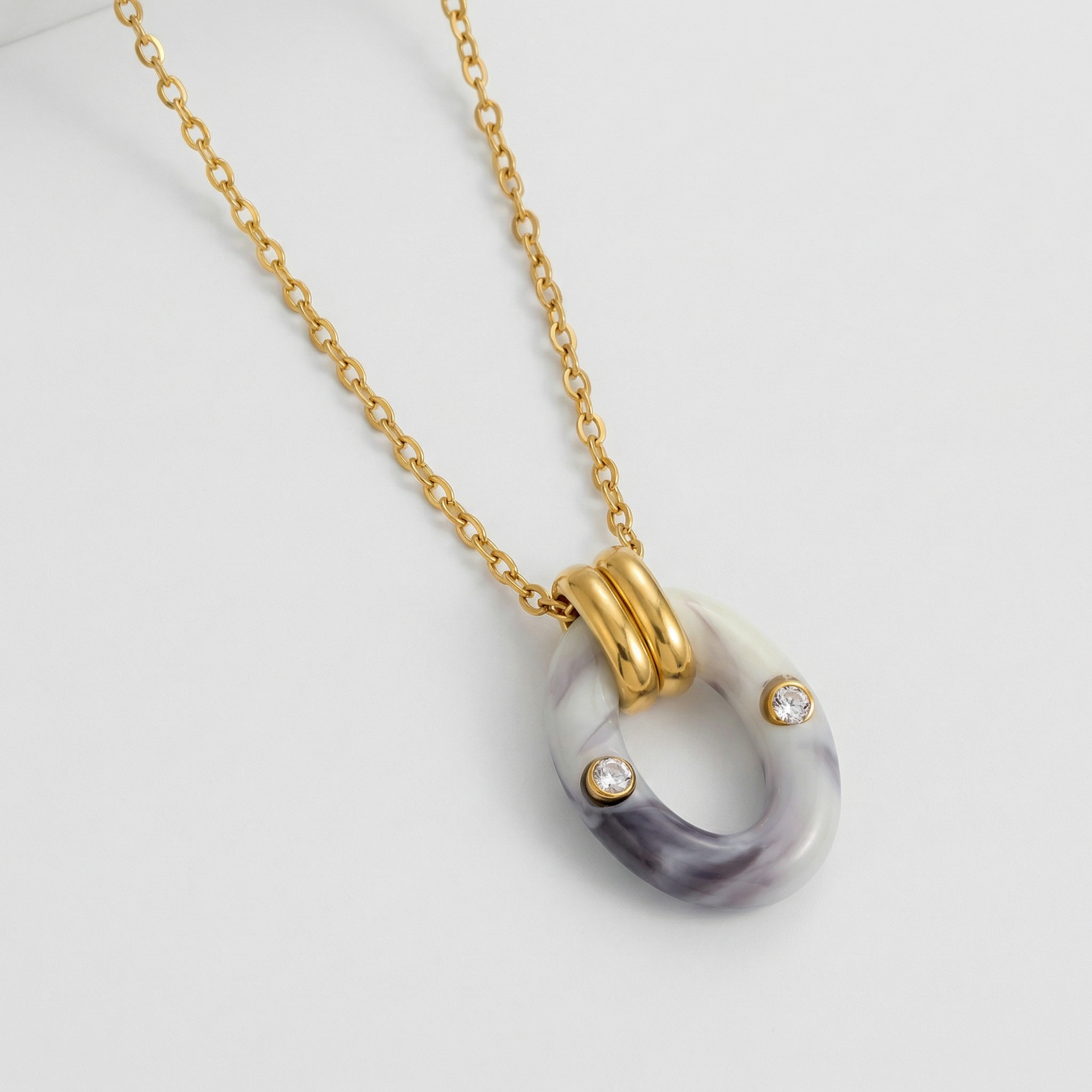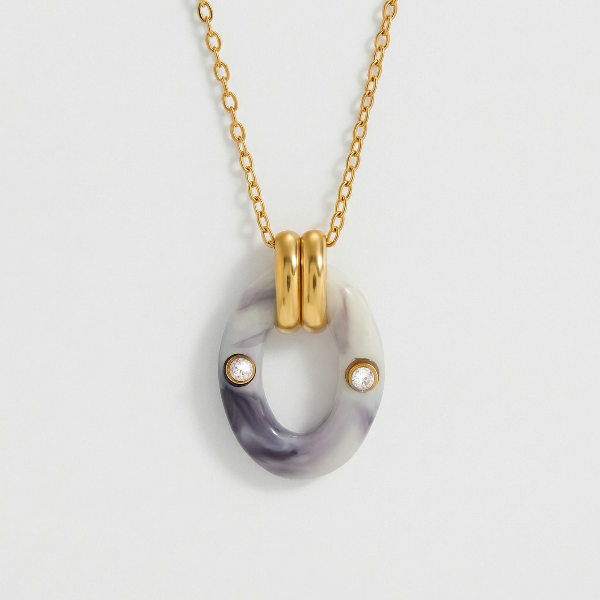 Elevate your everyday jewellery collection with this elegant Oval Resin Pendant Necklace, exclusively inspired by contemporary designs from Kalakaar Jewellery. Featuring a beautifully marbled resin centre in soft neutral tones with subtle colour variations ensure that each piece feels unique, adding a sophisticated yet artistic touch to any outfit.